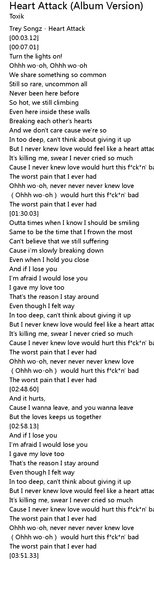 | [03:16.50] | But I never knew love would feel like a heart attack |