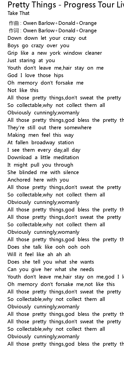 | 歌曲 | Pretty Things - Progress Tour Live 2011 |