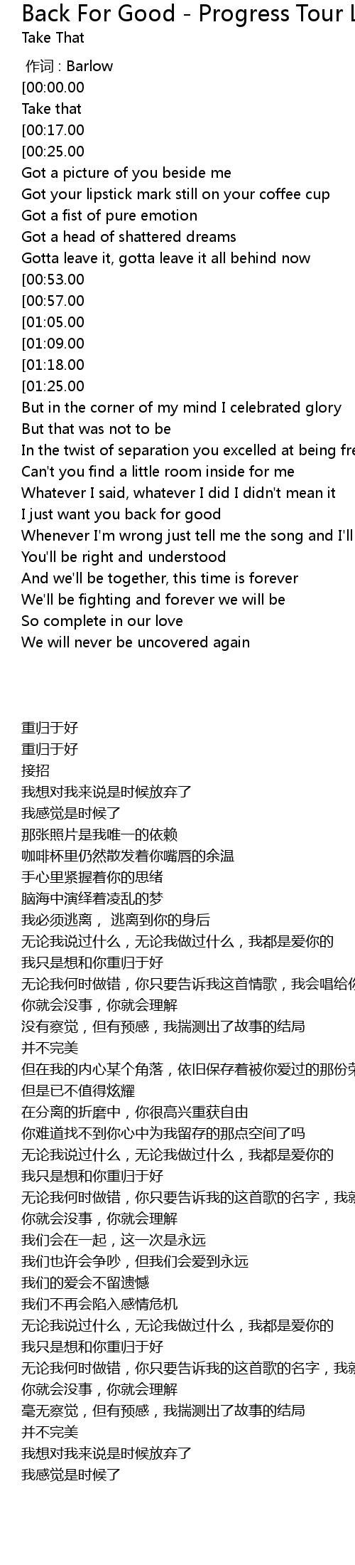 | [00:12.00][00:00.00] | Back For Good |