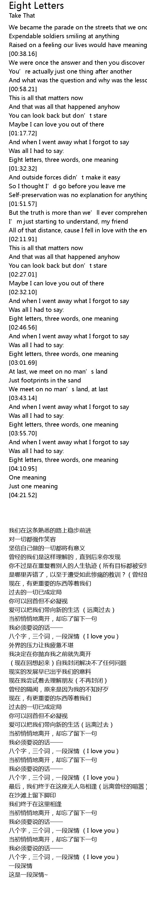 | [03:51.66] | 八个字,三个词,一段深情 (I love you) |