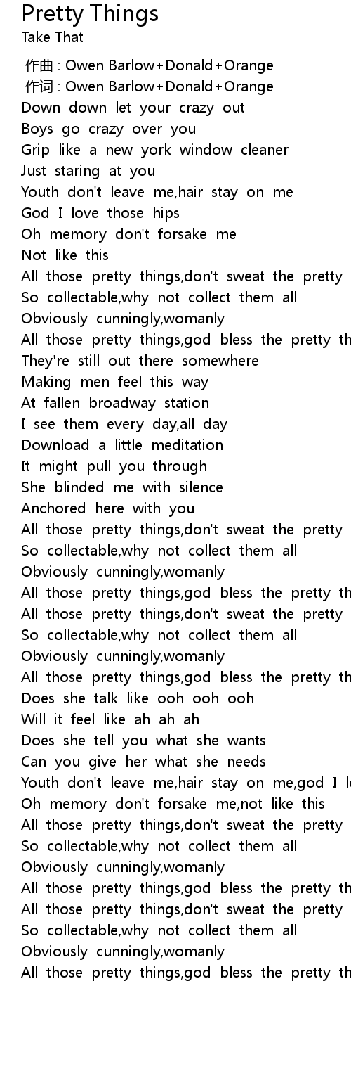 | [02:02.32] | All those pretty things,god bless the pretty things |