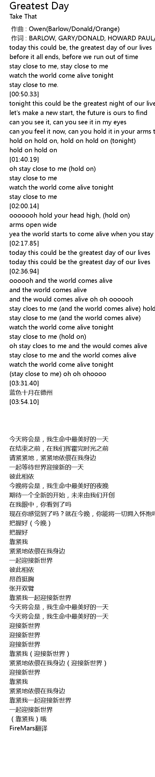 | [00:18.58] | today this could be, the greatest day of our lives |