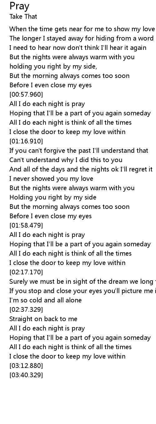 | [00:59.440] | All I do each night is pray |