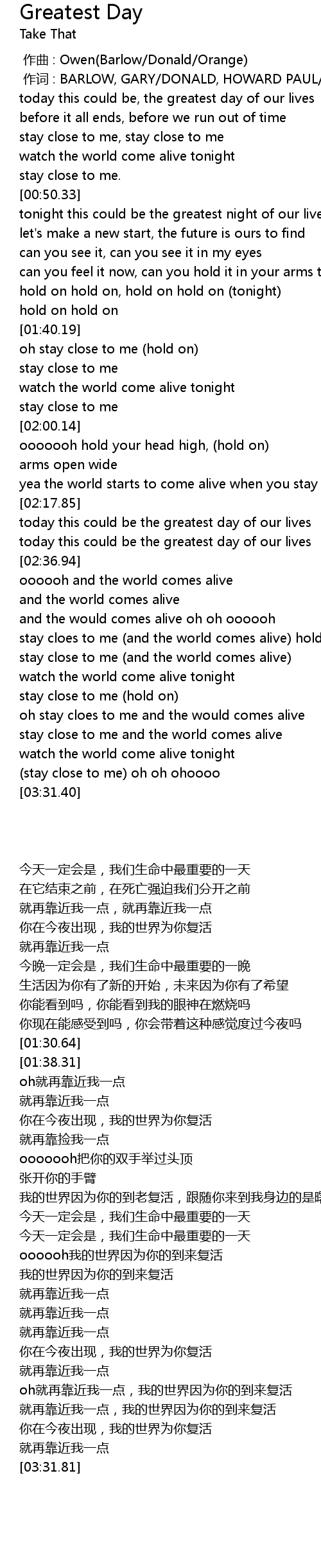 | [02:56.84] | stay cloes to me and the world comes alive hold on |