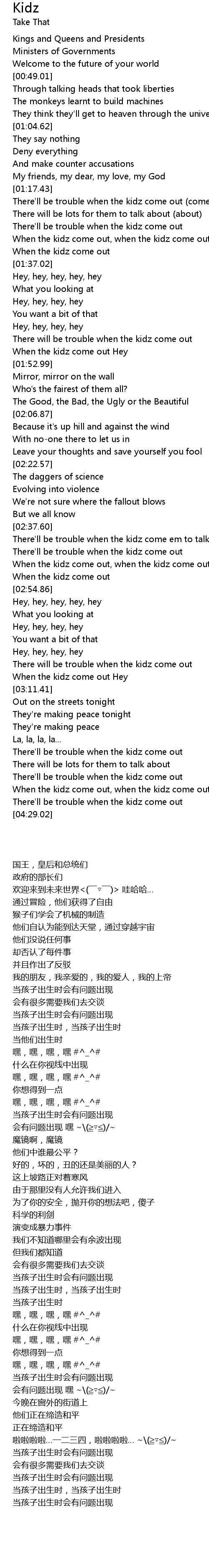 There'll be trouble when the kidz come em to talk about (about) |