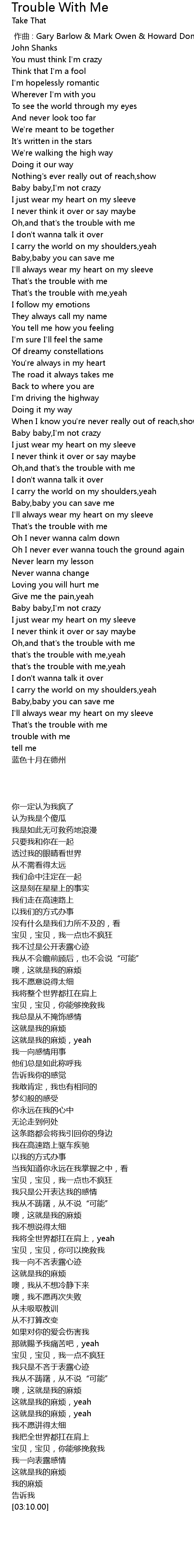 | [03:04.26] | 这就是我的麻烦 |
