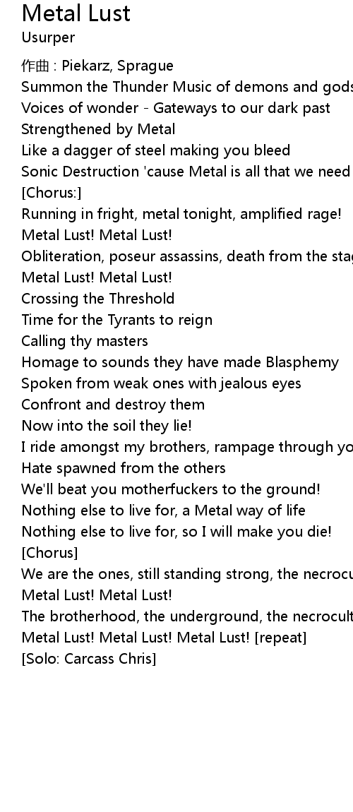 | Metal Lust! Metal Lust! Metal Lust! [repeat] | |