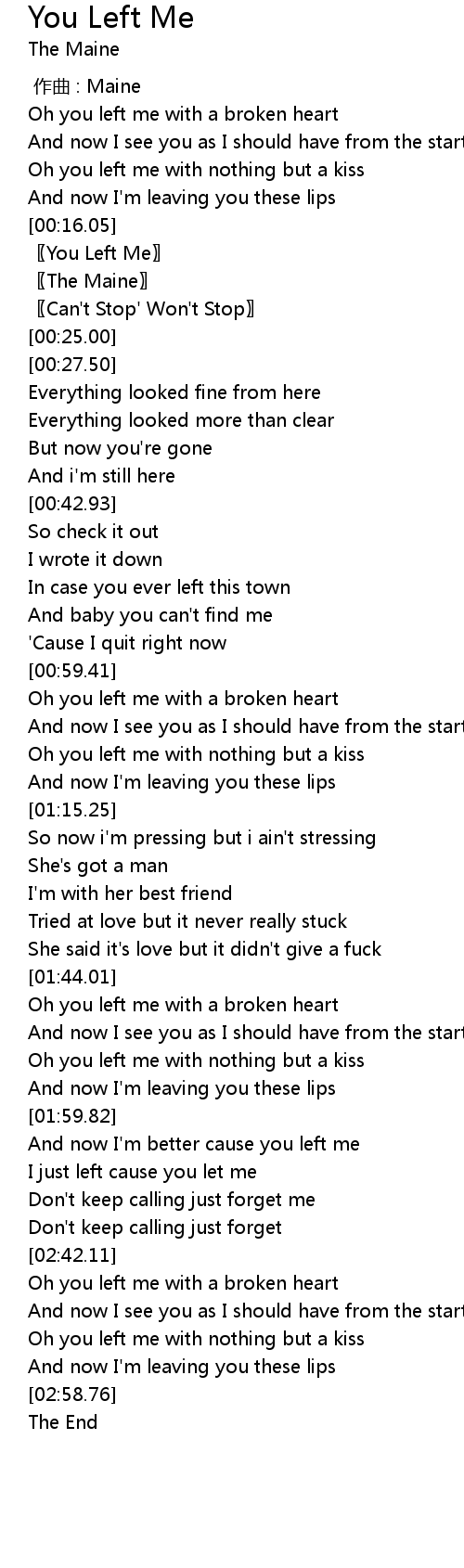 | [00:18.50] | You Left Me |