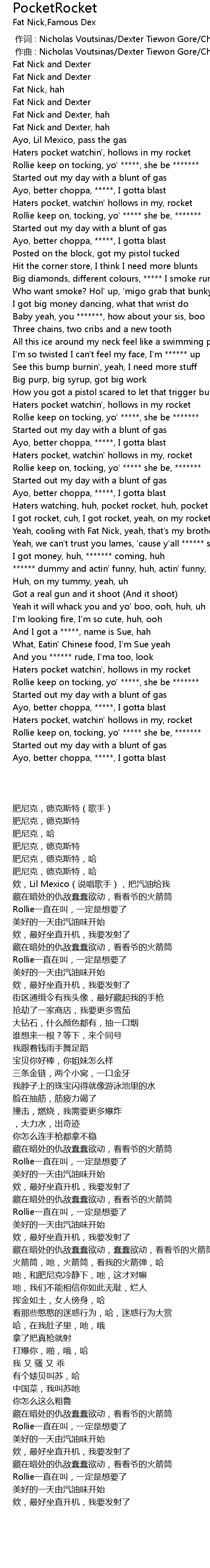 | [01:38.83] | I got rocket, cuh, I got rocket, yeah, on my rocket, huh |