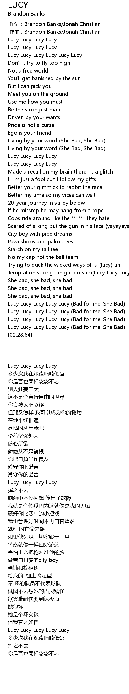 | [02:23.95] | Lucy Lucy Lucy Lucy Lucy (Bad for me, She Bad) |