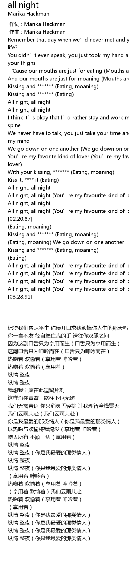| [03:17.61] | All night, all night (You’re my favourite kind of lover) |