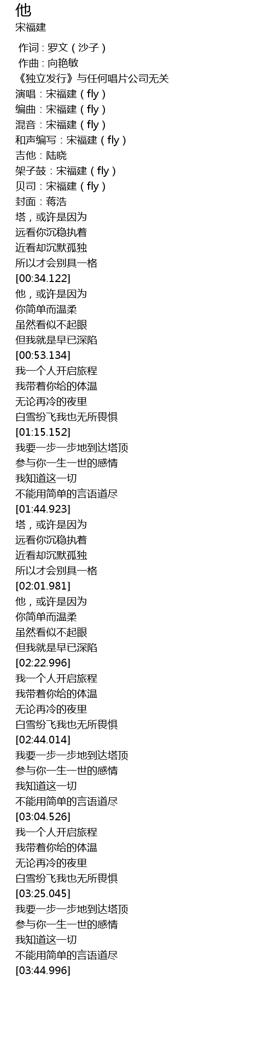 | [00:10.100] | 和声编写:宋福建(fly) |