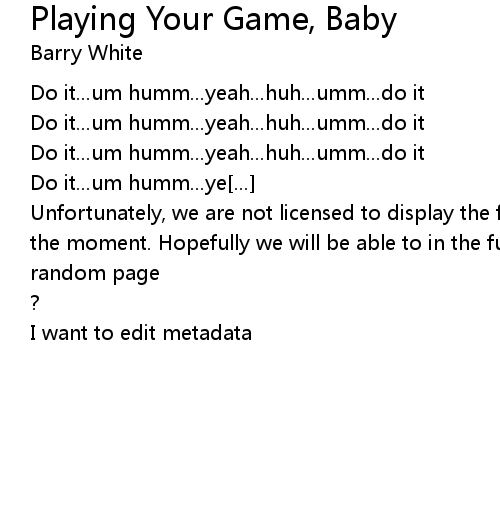 | Unfortunately, we are not licensed to display the full lyrics for this song at the moment. Hopefully we will be able to in the future. Until then, how about a | |