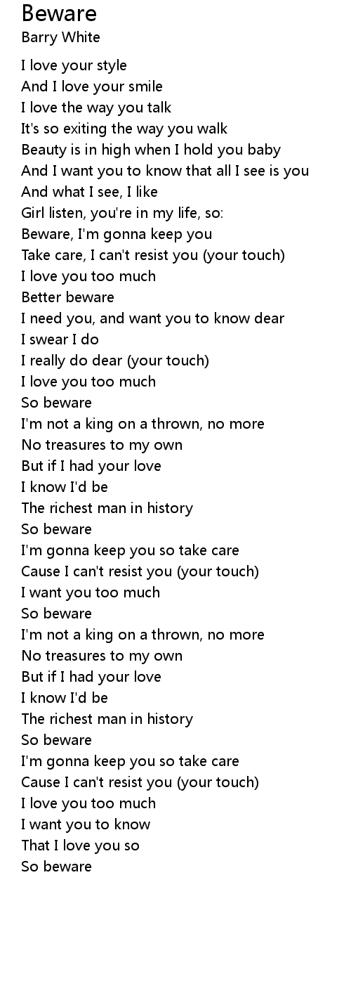 Take care, I can't resist you (your touch) |