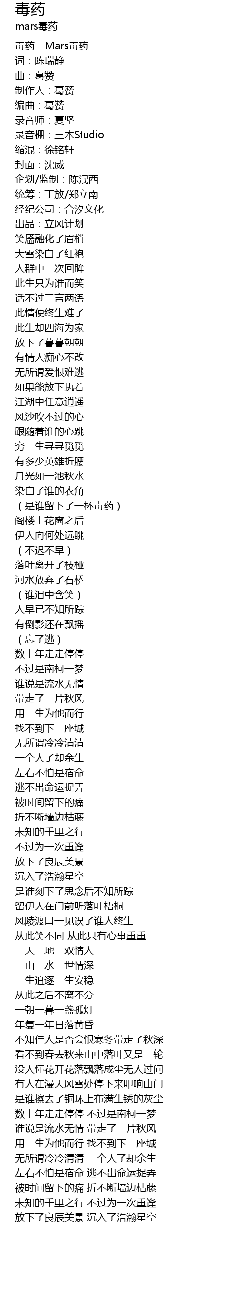 | [00:00.19] | 毒药 - Mars毒药 |