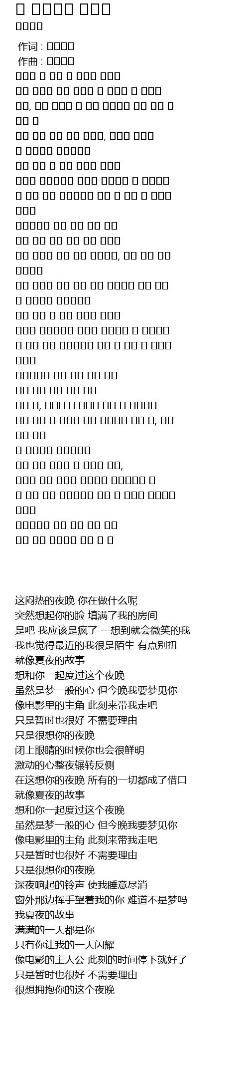 | 歌曲 | 한 여름밤의 이야기 |