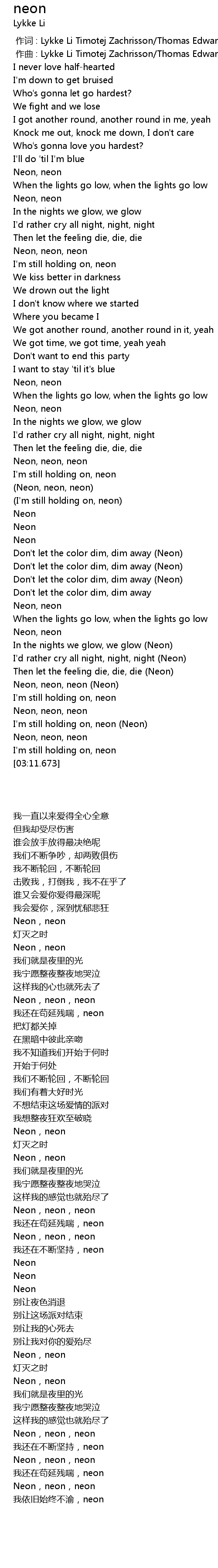 | [03:04.594] | Neon,neon,neon |