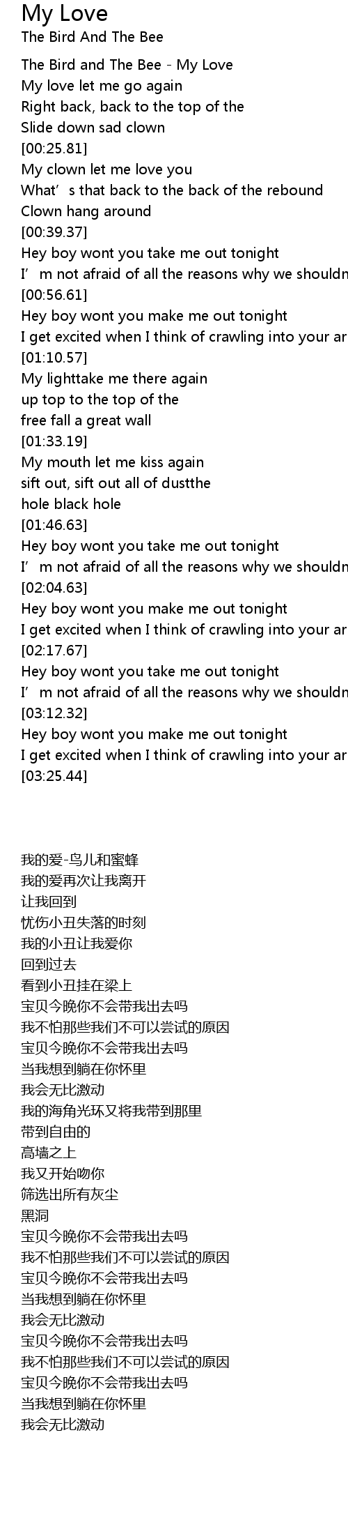 | [03:18.57] | 宝贝今晚你不会带我出去吗 |