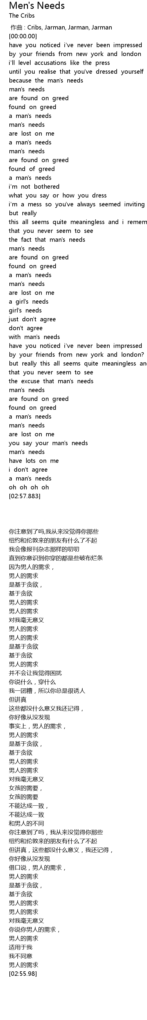 | [00:00.00] | 作曲 : Cribs, Jarman, Jarman, Jarman |