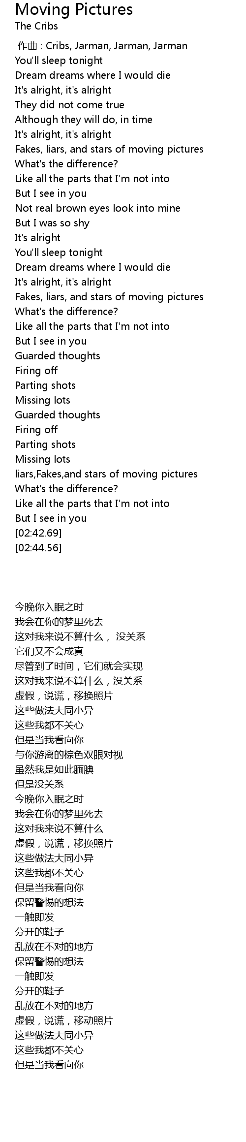 | [02:24.48] | 虚假,说谎,移动照片 |