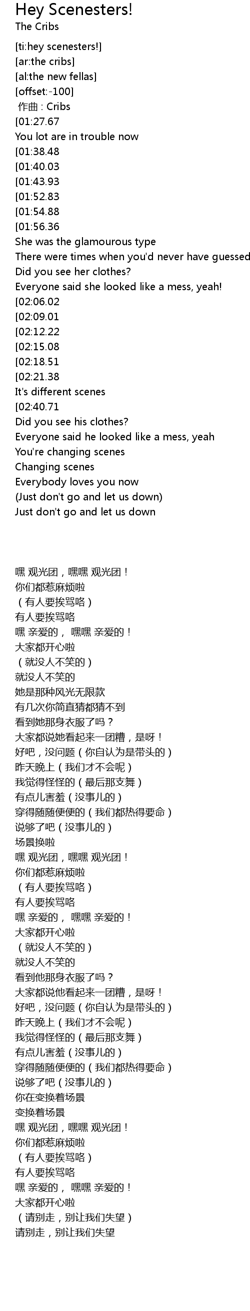 | [00:17.82][01:27.67][02:31.46] | Hey scenesters, hey hey scenesters! |