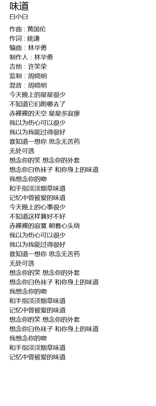 | [02:41.00] | 和手指淡淡烟草味道 |