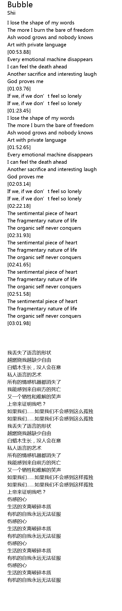 | [02:12.85] | 如果我们……如果我们不会感到这样孤独 |