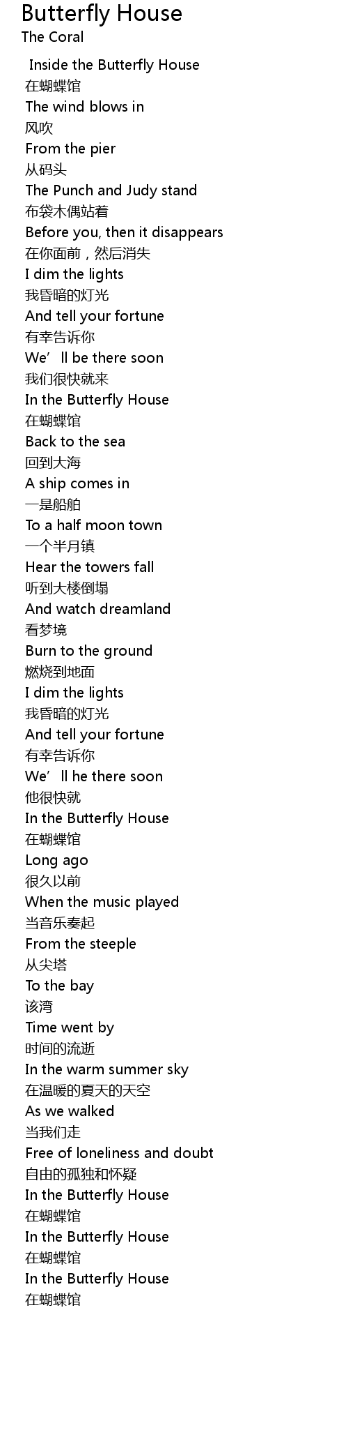 | 歌曲 | Butterfly House |