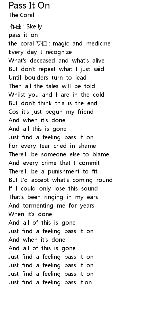 | [00:02.844] | the coral 专辑:magic and medicine |