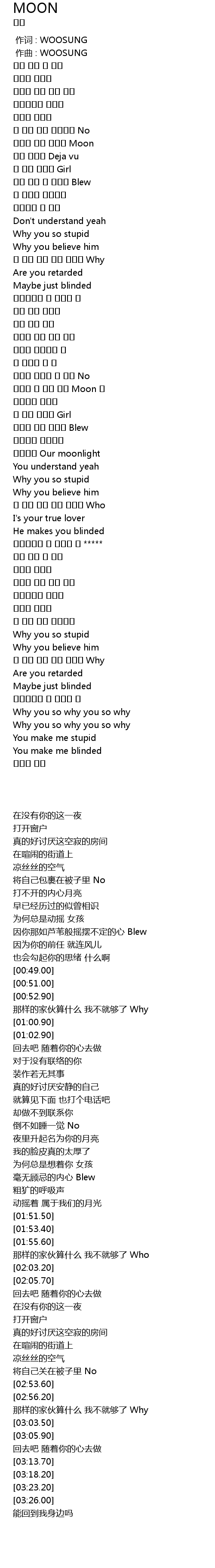 | [01:33.50] | 밤에만 떠 있는 너의 Moon 이 |