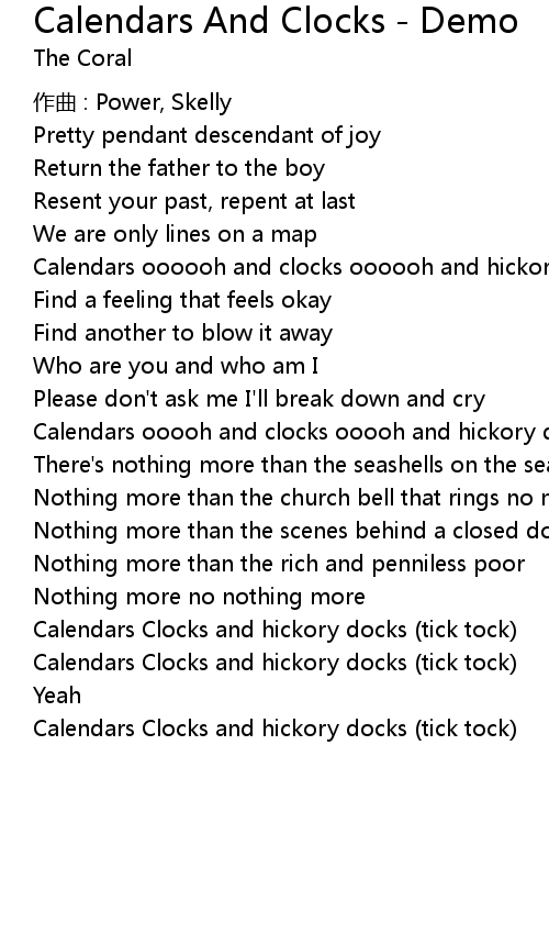 | 歌曲 | Calendars And Clocks - Demo |