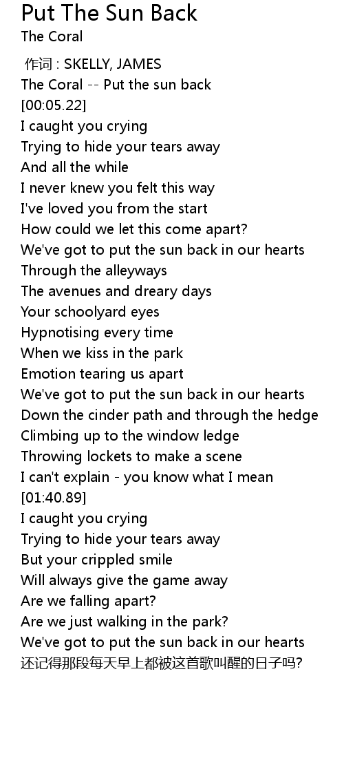 | [00:00.86] | The Coral Put the sun back |