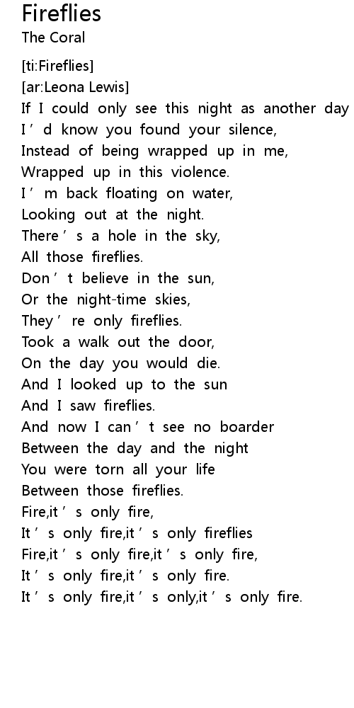 | [02:46.126] | It ’s only fire,it ’s only fireflies |