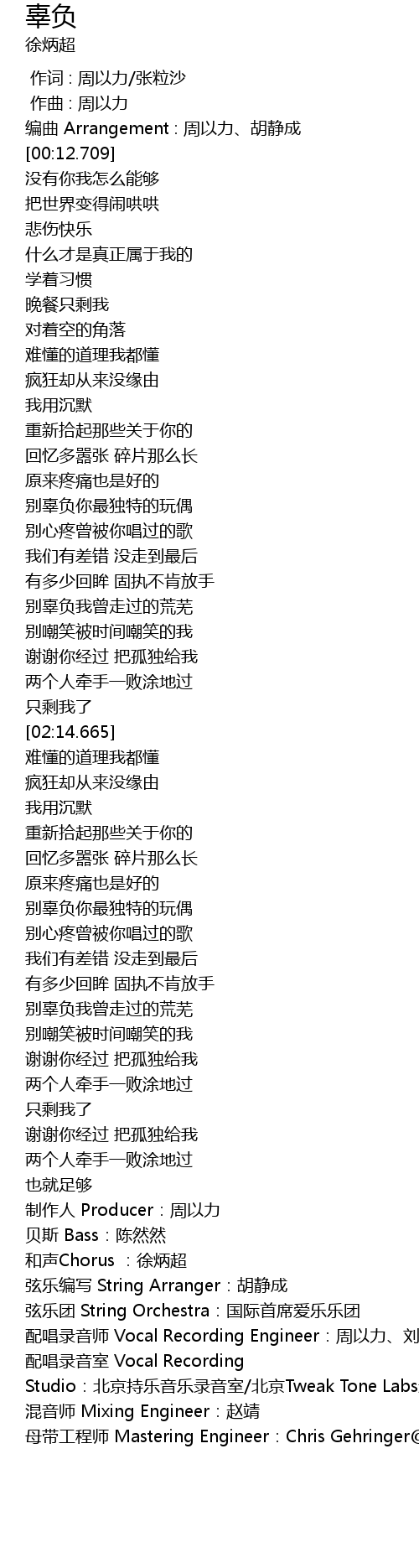 | [04:17.938] | 和声Chorus :徐炳超 |