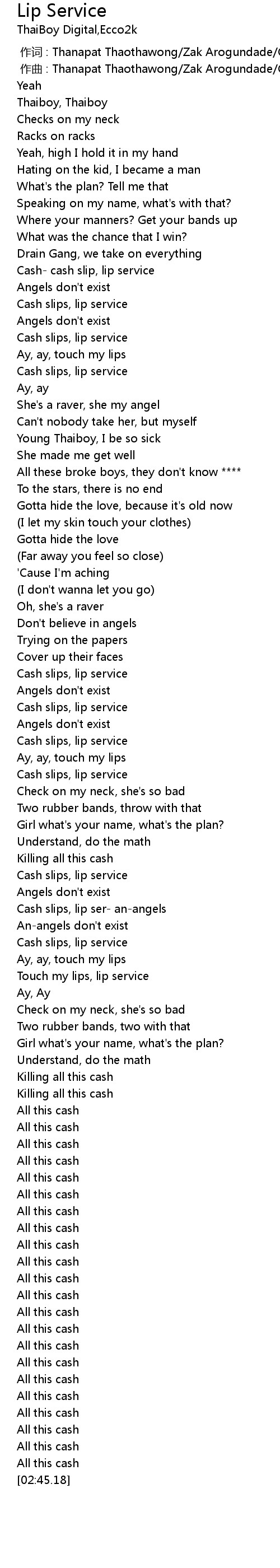 | [02:05.51] | Cash slips, lip ser- an-angels |