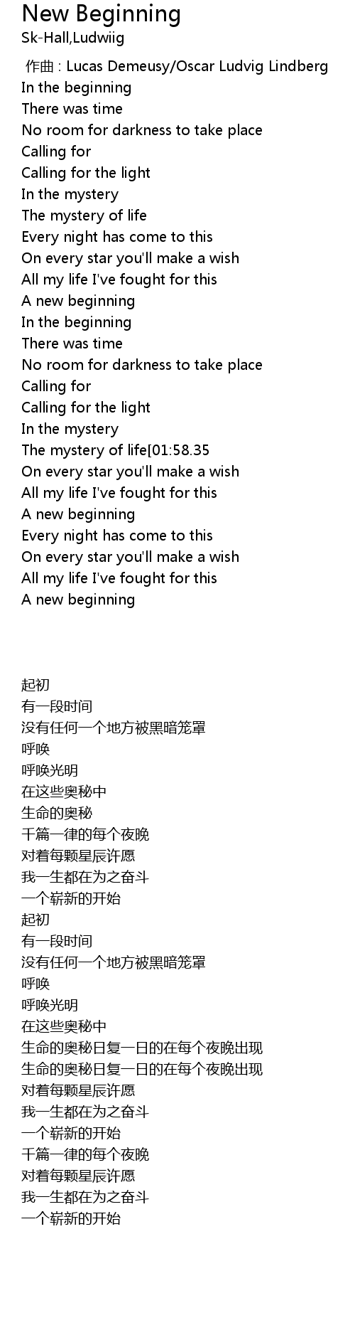 | [01:58.35] | 生命的奥秘日复一日的在每个夜晚出现 |