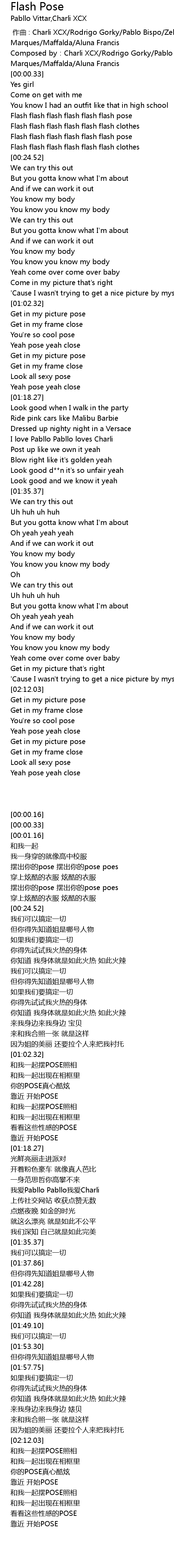 | [00:16.54] | 摆出你的pose 摆出你的pose poes |