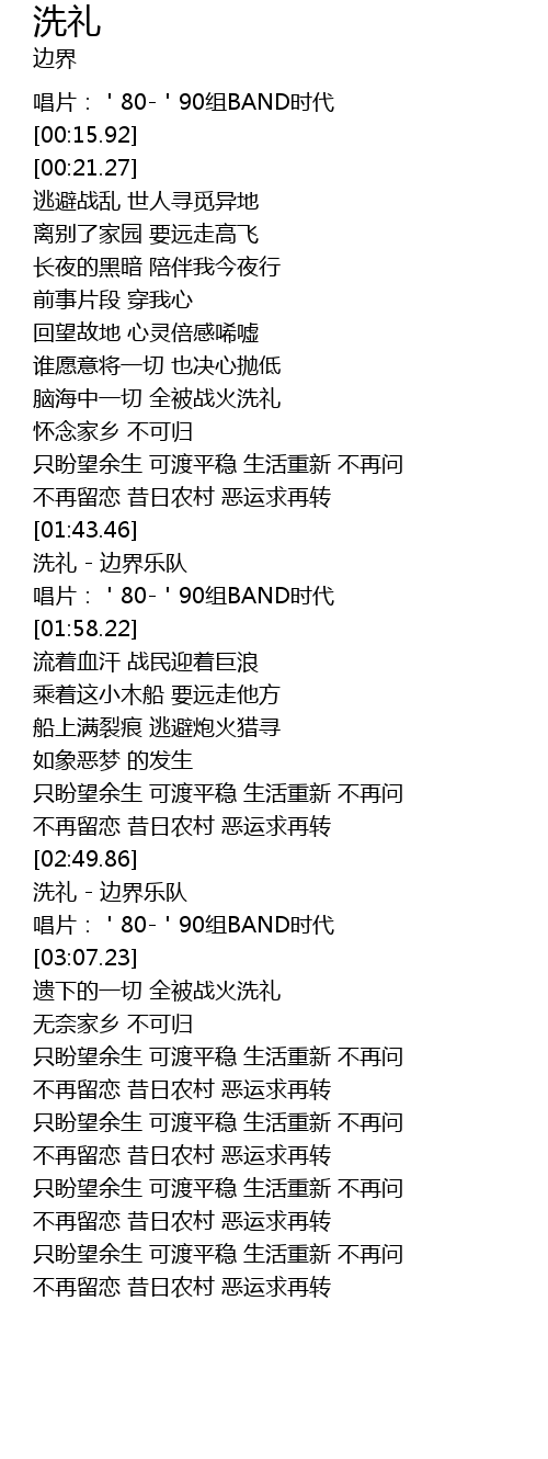 | [02:52.91] | 洗礼 - 边界乐队 |