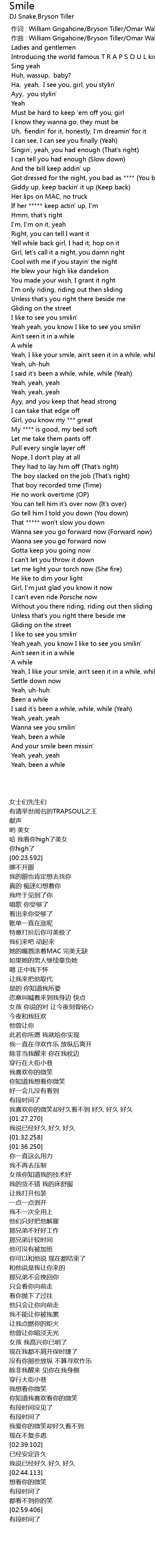 | [02:33.995] | Yeah, I like your smile, ain' t seen it in a while, while, while |
