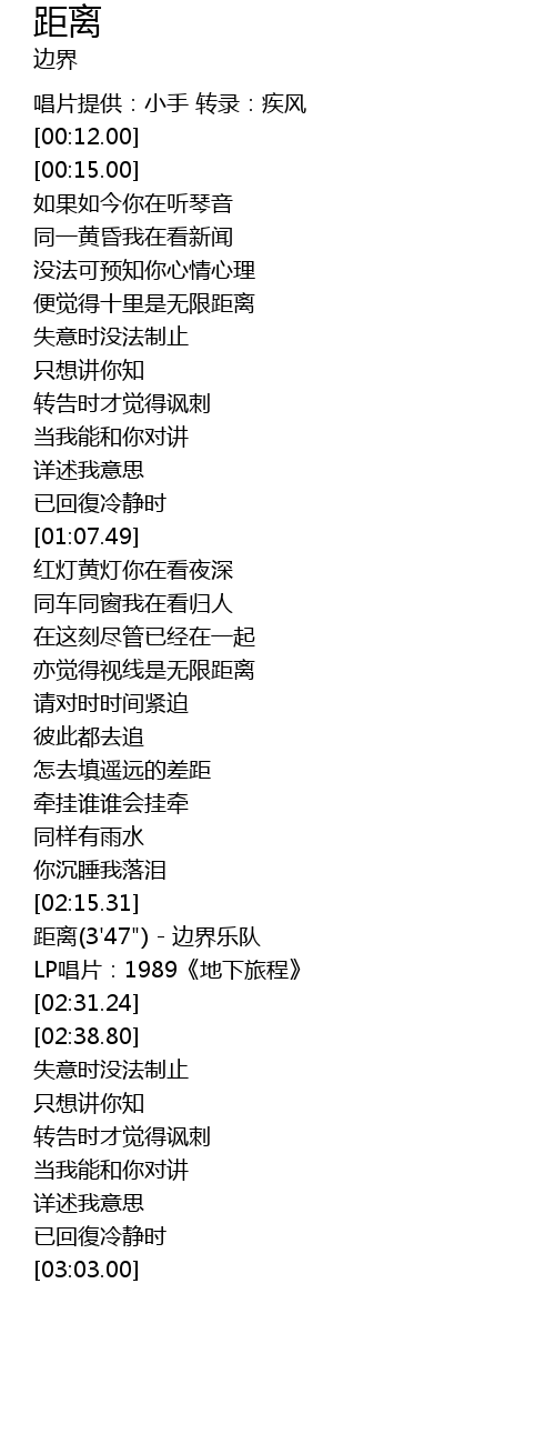 | [02:20.39] | 距离(3'47") - 边界乐队 |