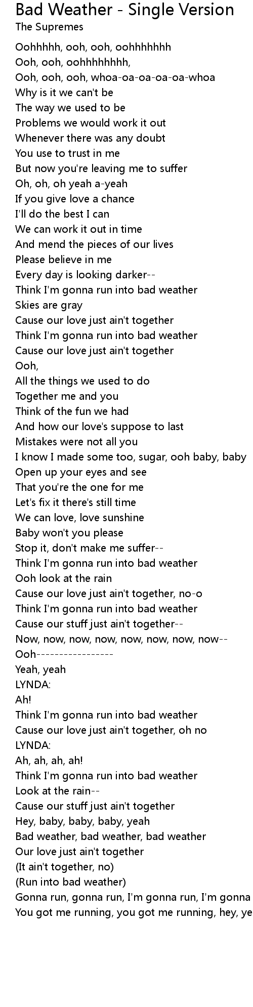 Bad Weather - Single Version 歌词