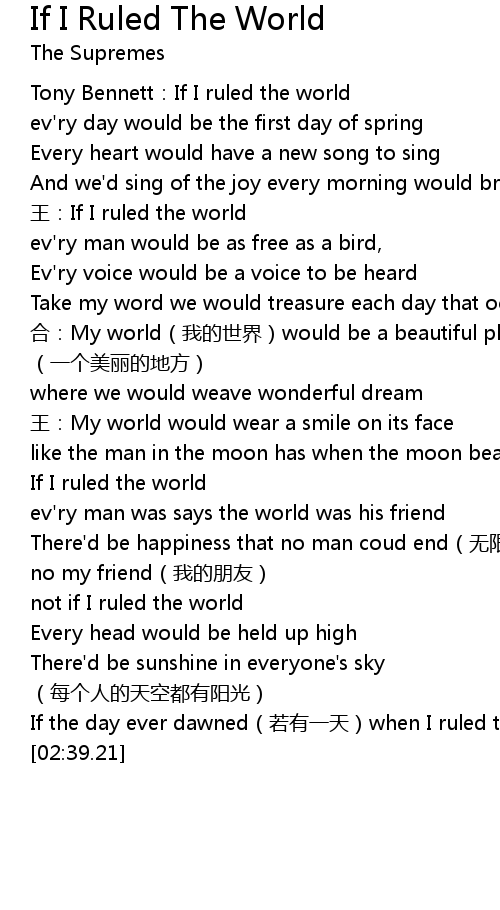 | [02:27.39] | If the day ever dawned(若有一天)when I ruled the world |