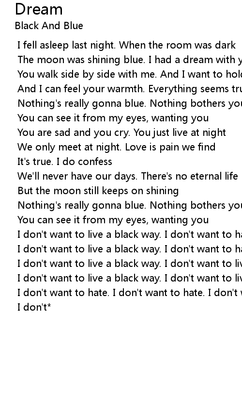 The moon was shining blue. I had a dream with you |
