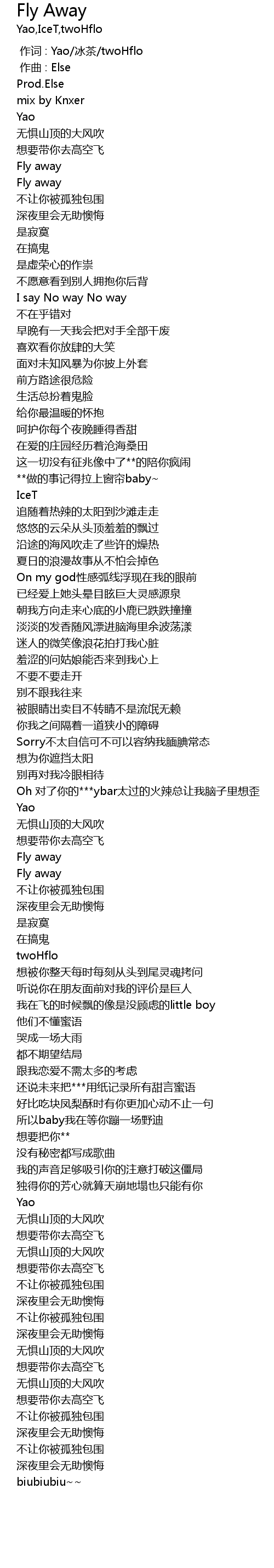 | [00:00.000] | 作词 : Yao/冰茶/twoHflo |