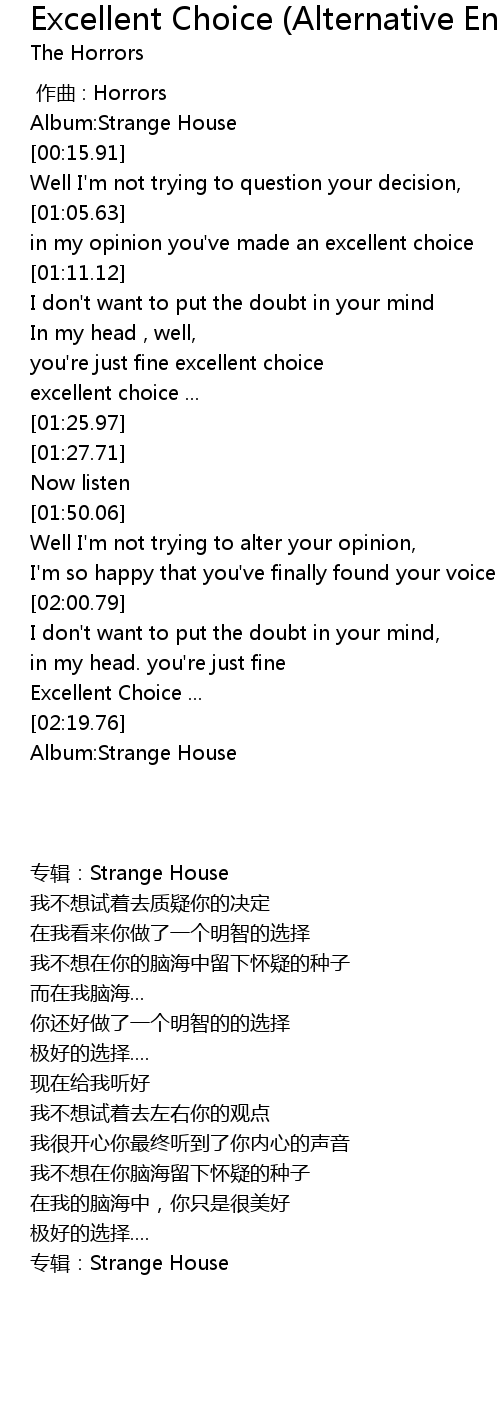 | 歌曲 | Excellent Choice (Alternative Ending) |