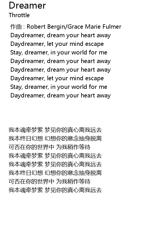 | [00:15.336] | Stay, dreamer, in your world for me |