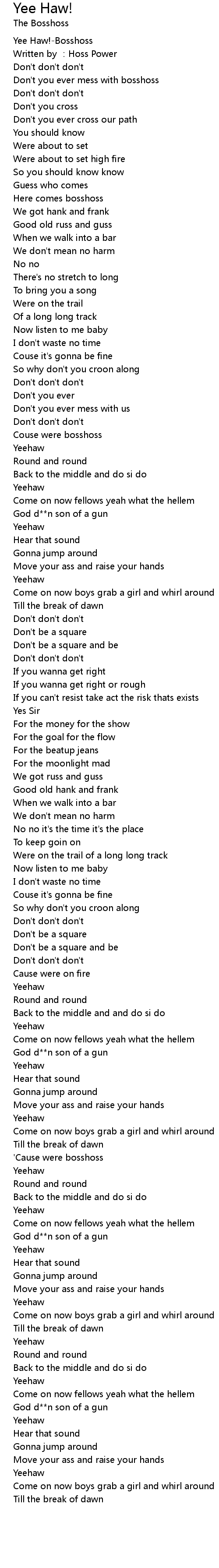 | [00:00.475] | Yee Haw! Bosshoss |