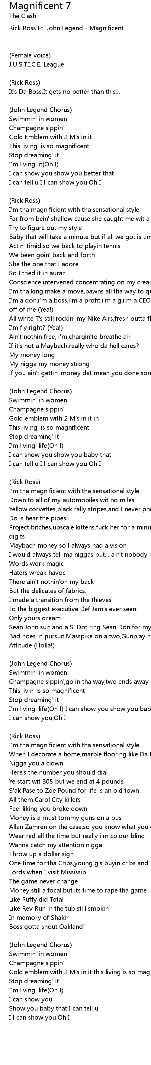 Rick Ross Ft. John Legend - Magnificent
