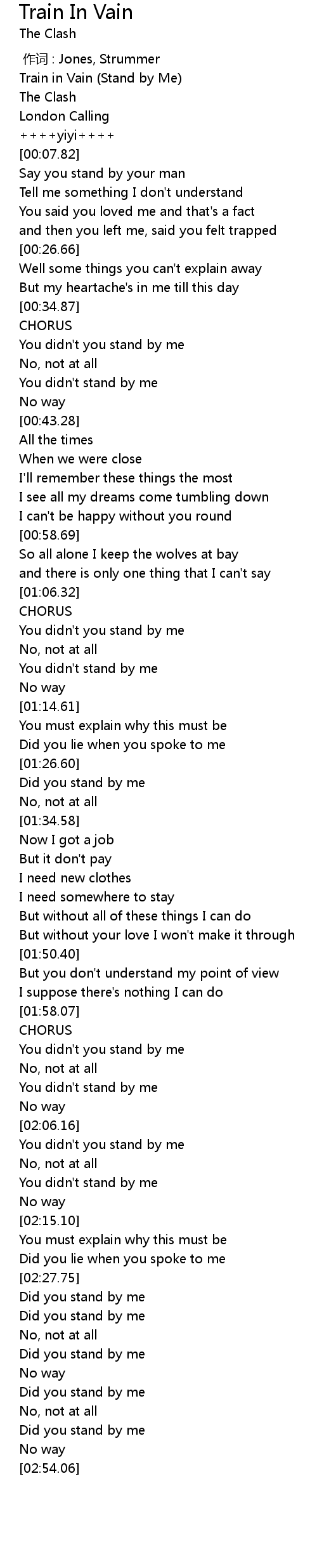 | [00:00.77] | Train in Vain Stand by Me |