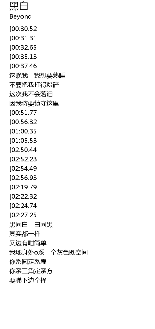 | [01:30.54] | 黑同白 白同黑 |